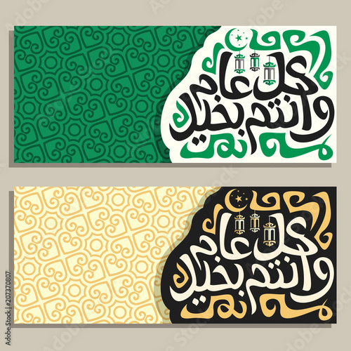 Vector Banners For Islamic New Year With Copy Space For Text Hanging Lamps And Original Brush