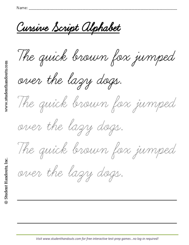 Cursive Script Alphabet Dashed Quick Brown Fox Practice Written Communication Orthography